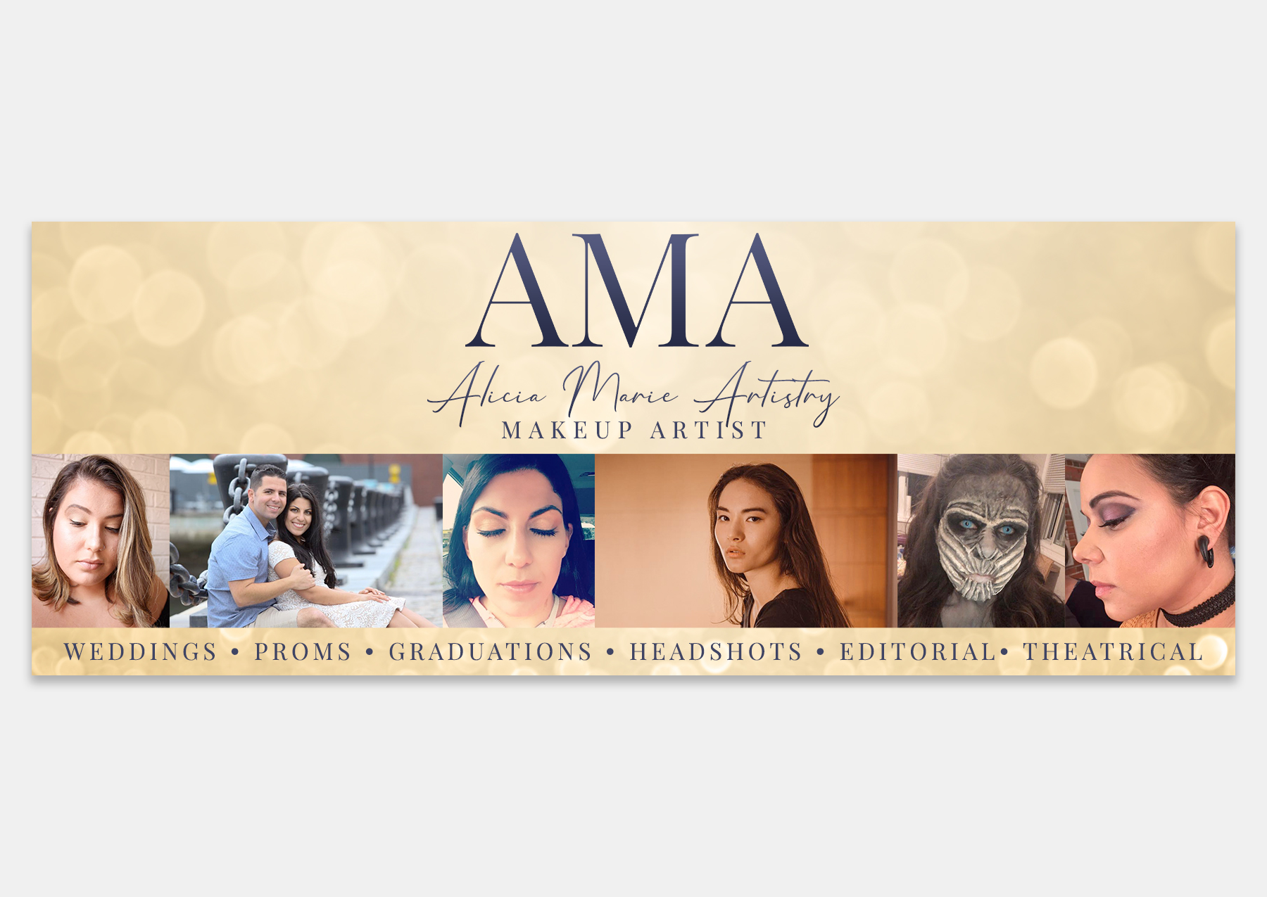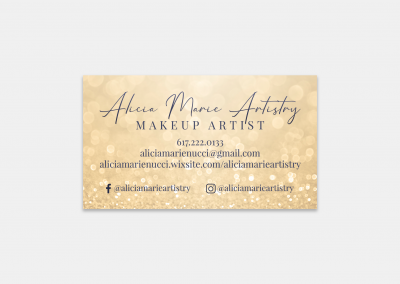 Makeup artist Alicia Marie came to me for a full branding package. I put together a logo, business card design, as well as designs for her to use on her Facebook page.