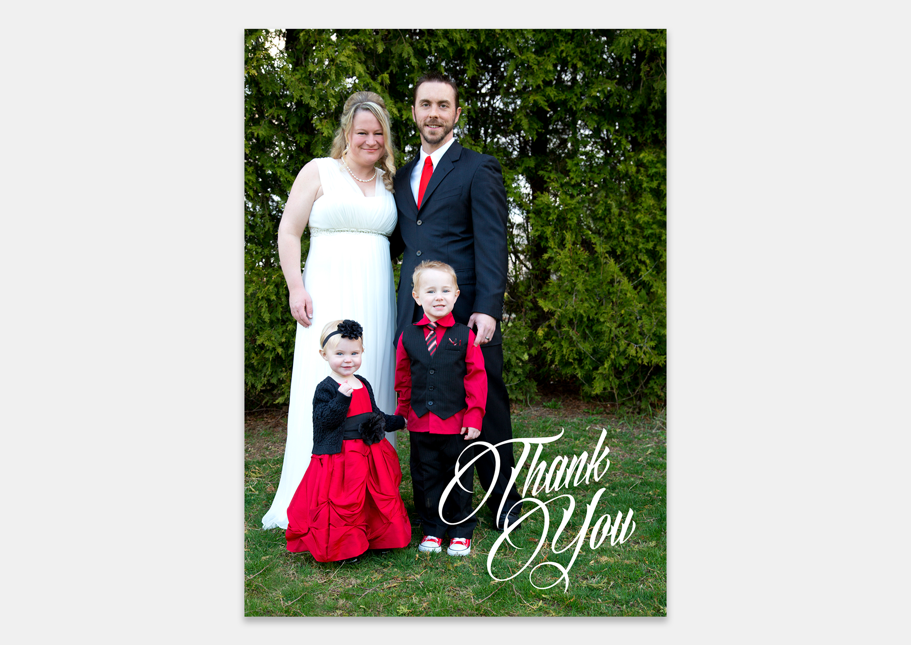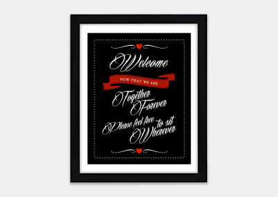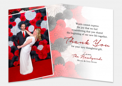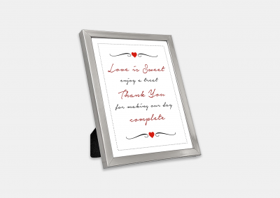 Next came the planning for the reception. We started with the invitation design, and branded everything else to that. I created a welcome/seating sign, a sign for the candy table, and a design for the stickers that were placed on the candy bags. The day of the reception I also photographed the bride & groom & their family. These photos were used on the thank you cards that were sent out after the celebration.